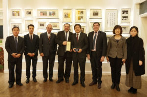 4月10日下午,乌拉圭中央银行行长马里奥•贝尔加拉(Mario Bergara)在乌拉圭驻华大使费尔南多•卢格里斯(Fernando Lugris)、乌拉圭央行副行长乔治•加马拉(Jorge Gamarra)的陪同下访问我校,并作专题讲座。校长彭龙会见了贝尔加拉一行。